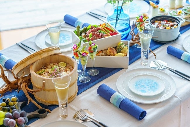 当日はホームパーティー検定認定講師であり、フードメニュー開発を担当した吉府真海先生とテーブルスタイリング担当の干場晴美先生による宗像大島の美しい自然の中で育まれた野菜、果物、魚介類をふんだんに使用した今回のスペシャルメニューのストーリーや、レシピの解説。そしてMINAWA(水沫)のコンセプトである「沫(あわ)」とその沫たちが白波となり、打ち寄せる青い海と広がる空をイメージしたテーブルセッティング。FROM九州の意味ある品々にトレンド感をプラスしたこだわりの演出でのおもてなしを解説します。