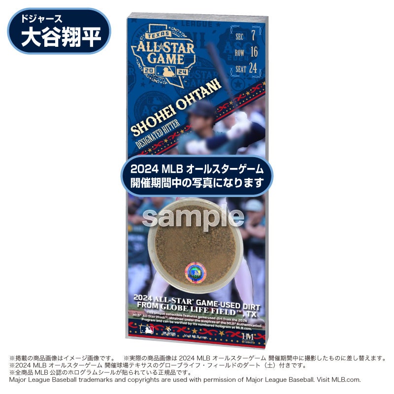 大谷翔平選手のオールスターゲーム出場を記念したメモリアルグッズになります。オールスターゲーム時の勇姿とダート(開催球場の土)が付属します。