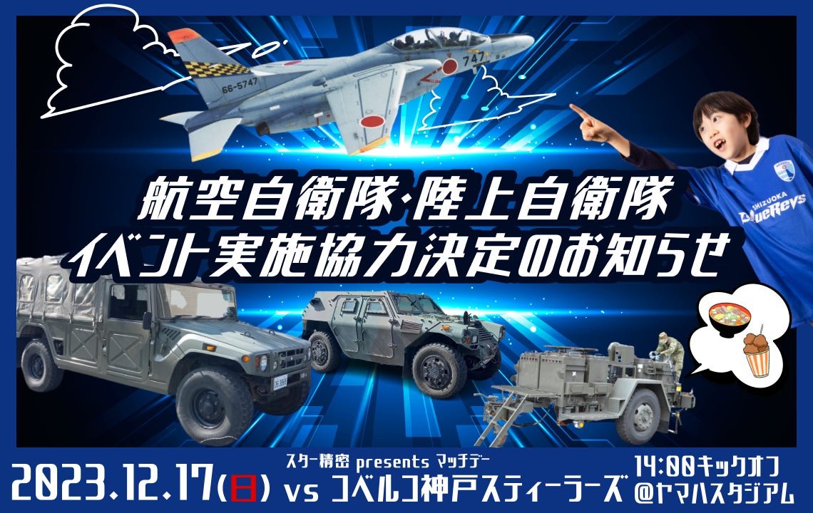 2023年12月17日(日)NTTジャパンラグビー リーグワン2023-24 DIVISION 1 第2節 スター精密 presents マッチデー コベルコ神戸スティーラーズ戦(14:00K.O./ヤマハスタジアム)にて、航空自衛隊浜松航空基地、陸上自衛隊板妻駐屯地のみなさまに、イベント実施へご協力いただけることが決定いたしましたのでお知らせいたします。