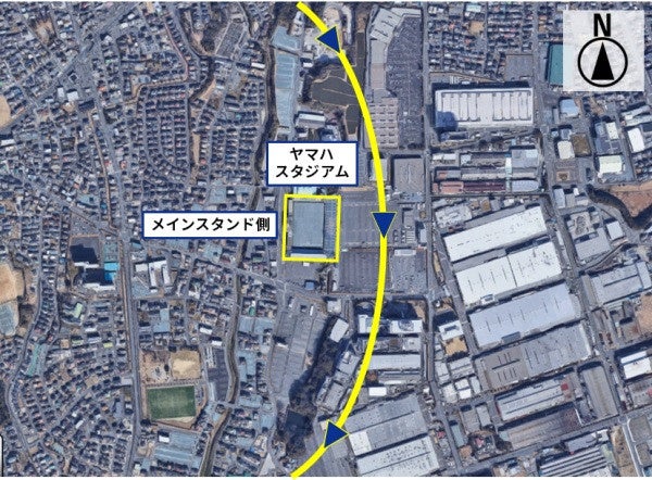 【飛行ルート】スタジアム北西~バックスタンド後方~スタジアム南西