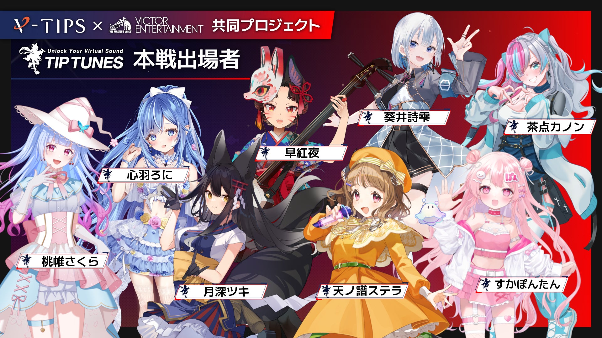 株式会社アイ・ピー・エル(神奈川県厚木市、代表取締役:吉川実)が提供する、バーチャルタレント専用の動画配信プラットフォーム「V-TIPS」(ブイチップス)と、ビクターエンタテインメント株式会社(本社:東京都渋谷区、代表取締役社長:植田勝教)は、バーチャルタレント対象の共同音楽プロジェクト「TIP TUNES」(読み:チップチューンズ)を2024年7月に発足しました。このたび、2025年初春のオリジナル楽曲作成を目指すバーチャルアーティストを募集するオーディションの予選通過者8名による本選が開始します。本選はライブ配信審査と歌唱審査の2つによって行われ、最終審査結果は11月8日(金)の発表予定です。