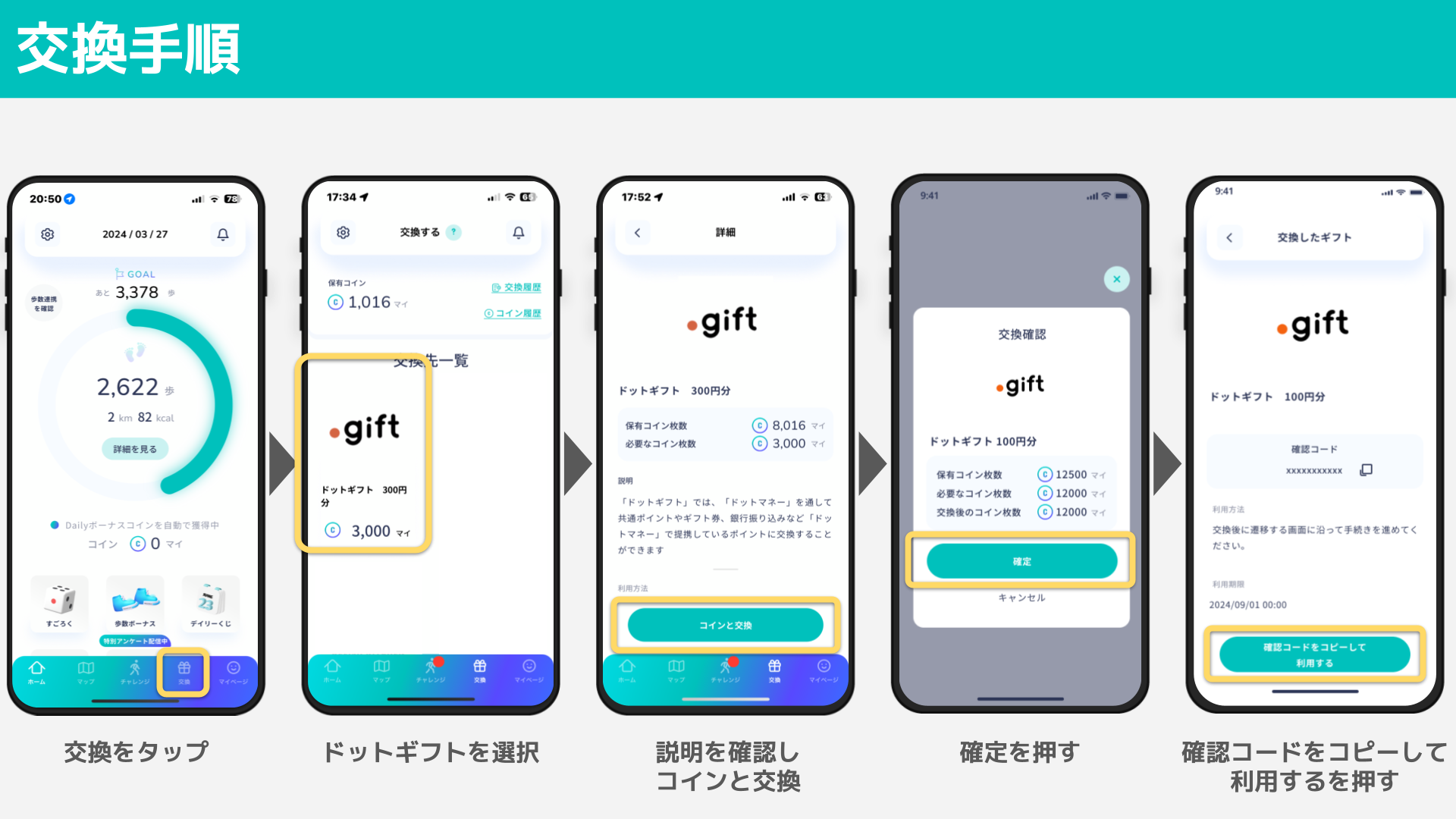 ※「ドットギフト」で交換の際、コピーした確認コードが必要になります