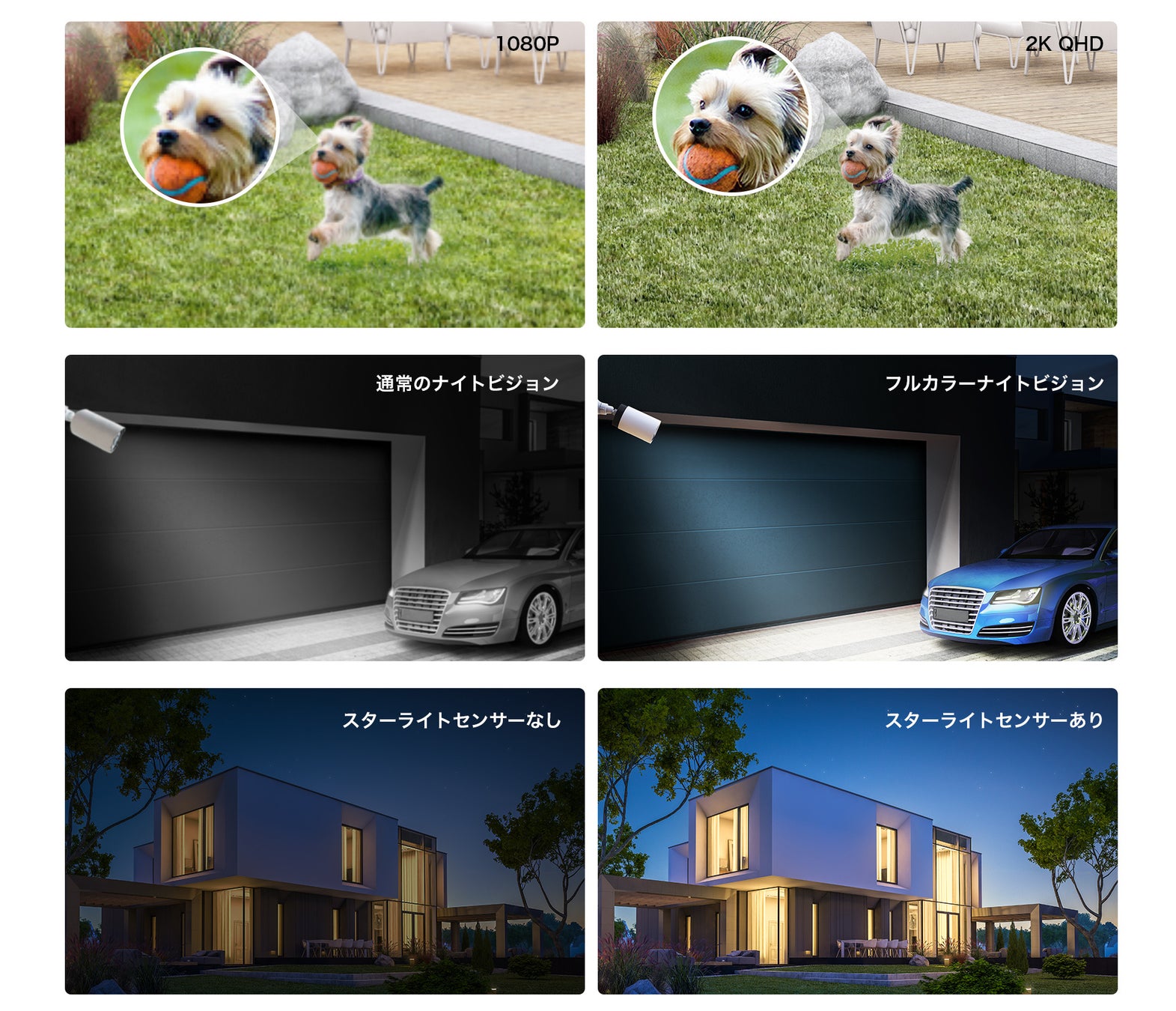 • フルカラーナイトビジョン:スターライトセンサーが夜間でもカラフルで高画質な映像を提供
