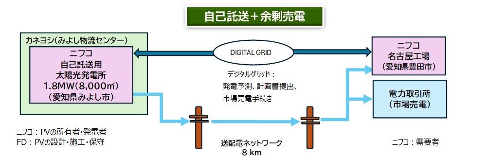 設置面積は8,000㎡を超えますが、ニフコと密接なサプライチェーンで結びついているカネヨシみよし物流センターの屋上を活用することで本スキームが可能となります。