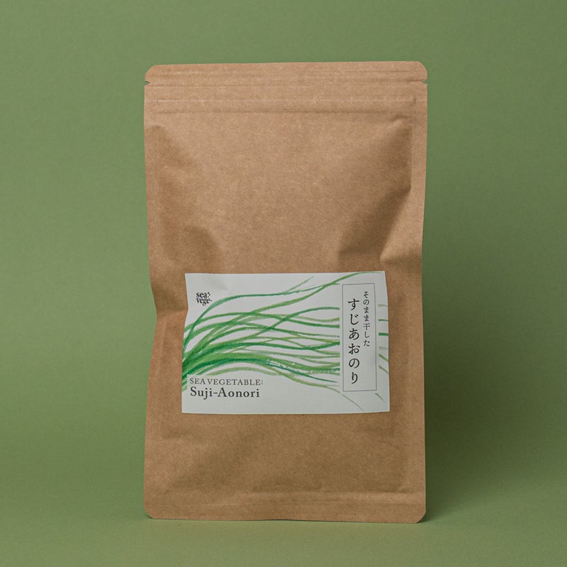 青のりの中で最も香り高いと言われる品種で、海藻の中でもその存在は際立ちます。新鮮なうちに乾燥させることで雑味を抑えた、繊細でさわやかな、スジアオノリ本来の香りをお楽しみいただけます。