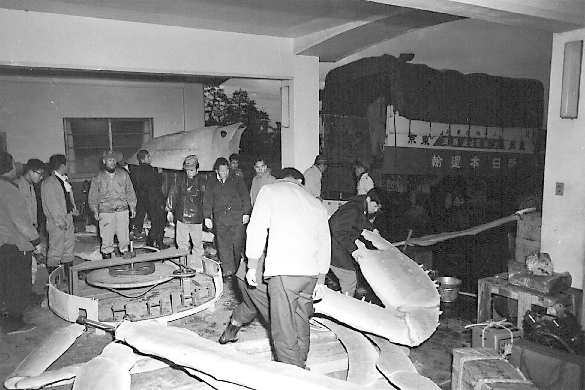 初代かに看板は、太い針金をまいた骨組みに麻袋を張り合わせ着色に使ったペンキで防水を兼ね、爪や脚を動かすのに5つのモーターを使って製作し、1962年の開店から1971年まで10年間、働いていました。
