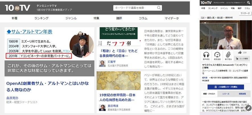 大企業向けLMS「SmartSkill Campus」、東大教授など日本を代表する有識者が講師として出演する教養動画配信サービス「テンミニッツTV」と連携開始