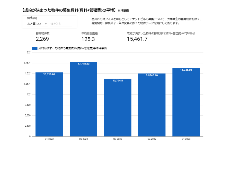 成約件数が減少していますが、成約面積が前期比で増加、グレード感のある建物が選ばれていることから成約賃料の平均金額が引き上げられています。(下図参照)