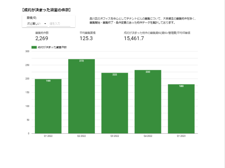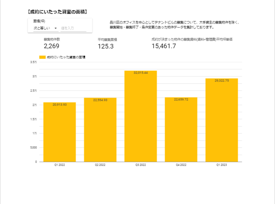 2023年第1四半期の成約面積は、29,322.75坪と前第1四半期を大きく上回る状況です。