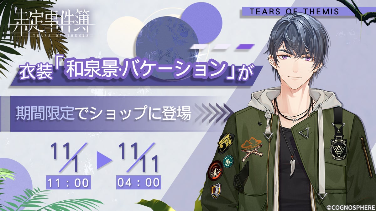 11月1日(火)より、衣装「和泉景·バケーション」が「ショップ-外見ショップ」に期間限定で販売されます。