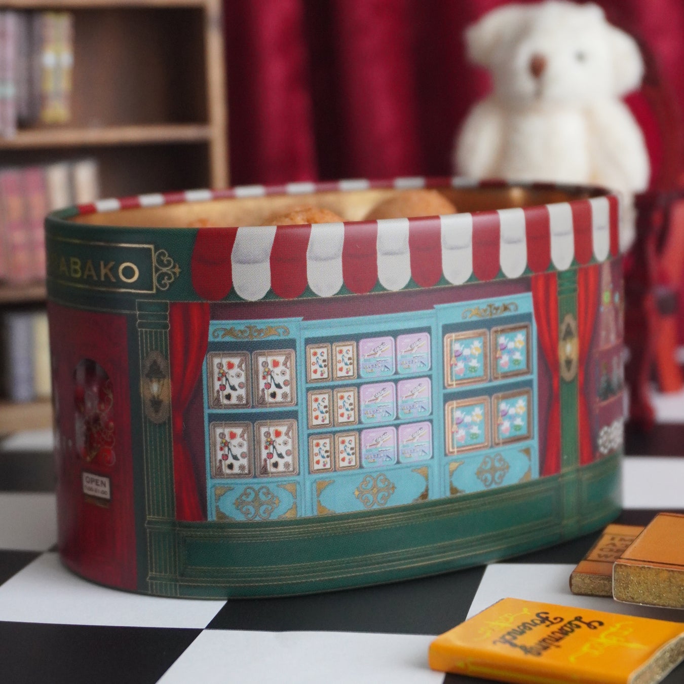 缶の側面には原作小説に登場するお店「宝箱」をイメージしたイラストを描きました。