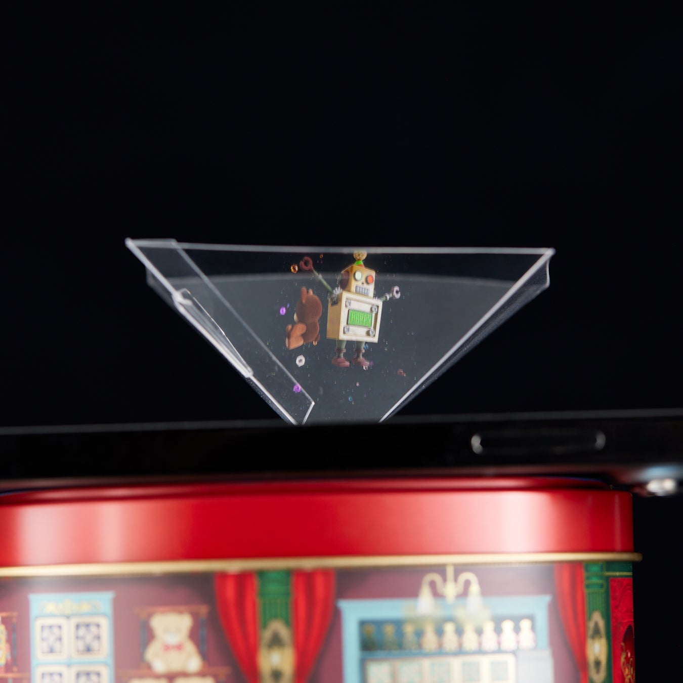"くまとロボットの3D映像"と"コラボ楽曲"を楽しめる3Dホログラムキット