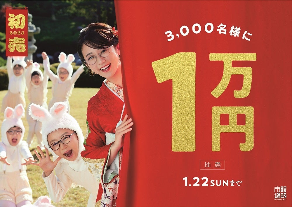 メガネ、コンタクトレンズ、補聴器の販売、その他関連商品の販売を行う眼鏡市場を展開する株式会社メガネトップ(所在地:静岡県静岡市、代表取締役社長:冨澤昌宏)は、2023年1月1日(日)~1月22日(日)までの期間中に、税込み9,000円以上ご購入のお客様の中から抽選で3,000名様に現金10,000円をプレゼントする『2023年初売りキャンペーン』を全国の眼鏡市場店舗にて開催いたします。