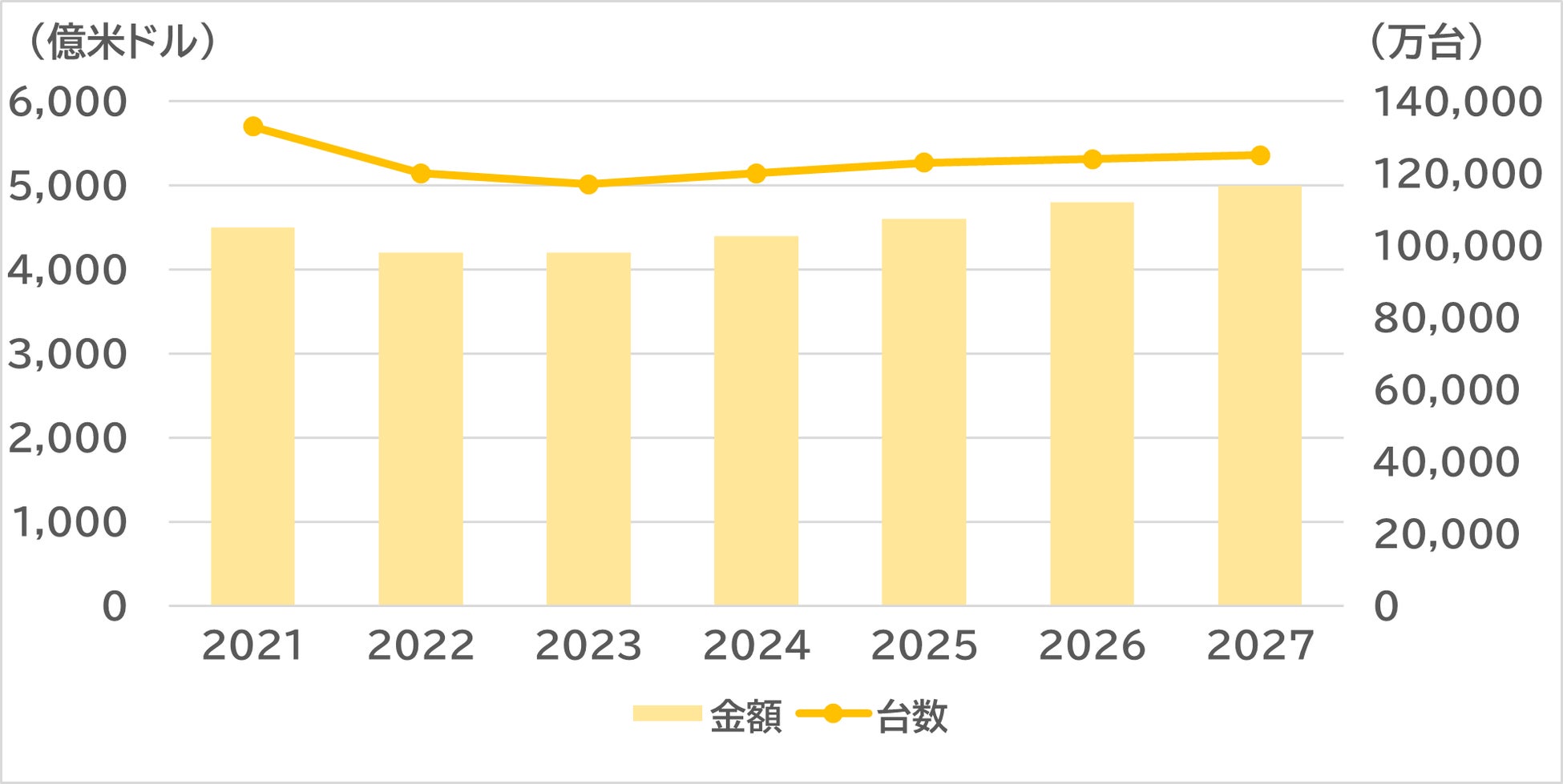 スマートフォンは、SNSやキャッシュレス決済、動画配信など多様な用途に欠かせない生活ツールである。世界市場は2017年をピークに減少が続いたが、2024年は約12億台・4,400億ドル(66.7兆円)と、AI搭載機種の普及や新興国での需要増によりプラス成長へ転じた。地域別ではアジアが約5割を占め、日本でもAI機能搭載機種による買い替え促進で回復傾向にある。今後もAIスマートフォンや5G端末への移行を背景に、2026~27年にかけて緩やかな市場拡大が続く見通しである。さらに、各国での補助金政策や、折りたたみ式モデルなど新機軸商品の投入も市場成長を後押ししている。メーカー各社はハイエンドモデルへの注力を強め、AI機能による差別化が競争力の鍵となっている。AI技術の進化が今後のスマートフォン市場の成長ドライバーとして期待される。