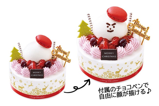 付属のチョコペンで雪だるまの顔を描き、オリジナルの雪だるまを作れるケーキが今年も登場! 黄桃のシロップ漬けをサンドしたショートケーキに、北海道産チーズのムースを重ねました。上面を彩 る甘酸っぱいベリーのコンポートとの相性も抜群です。帽子に見立てたマカロン皮やクリスマスツリーモチーフのチョコレートを飾り、より可愛く仕上げています。ちょっとしたひと手間で自分たちだけのクリスマスを演出でき、こどもから大人まで楽しめる雪だるまケーキです。