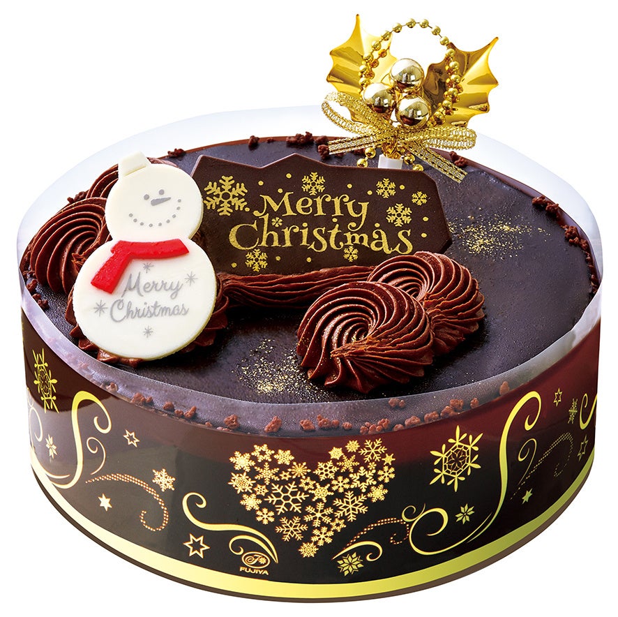 人気のプレミアムチョコ生ケーキをクリスマス仕様にアレンジ。ココアスポンジにフレーバービーンズカカオマス使用のチョコクリームとビターな味わいのチョコガナッシュを重ね、アクセントにキャンディングクルミをサンドしました。可愛らしい雪だるまのチョコアタッチメントや柊を飾り、金箔をあしらって仕上げたワンランク上のチョコレートケーキです。