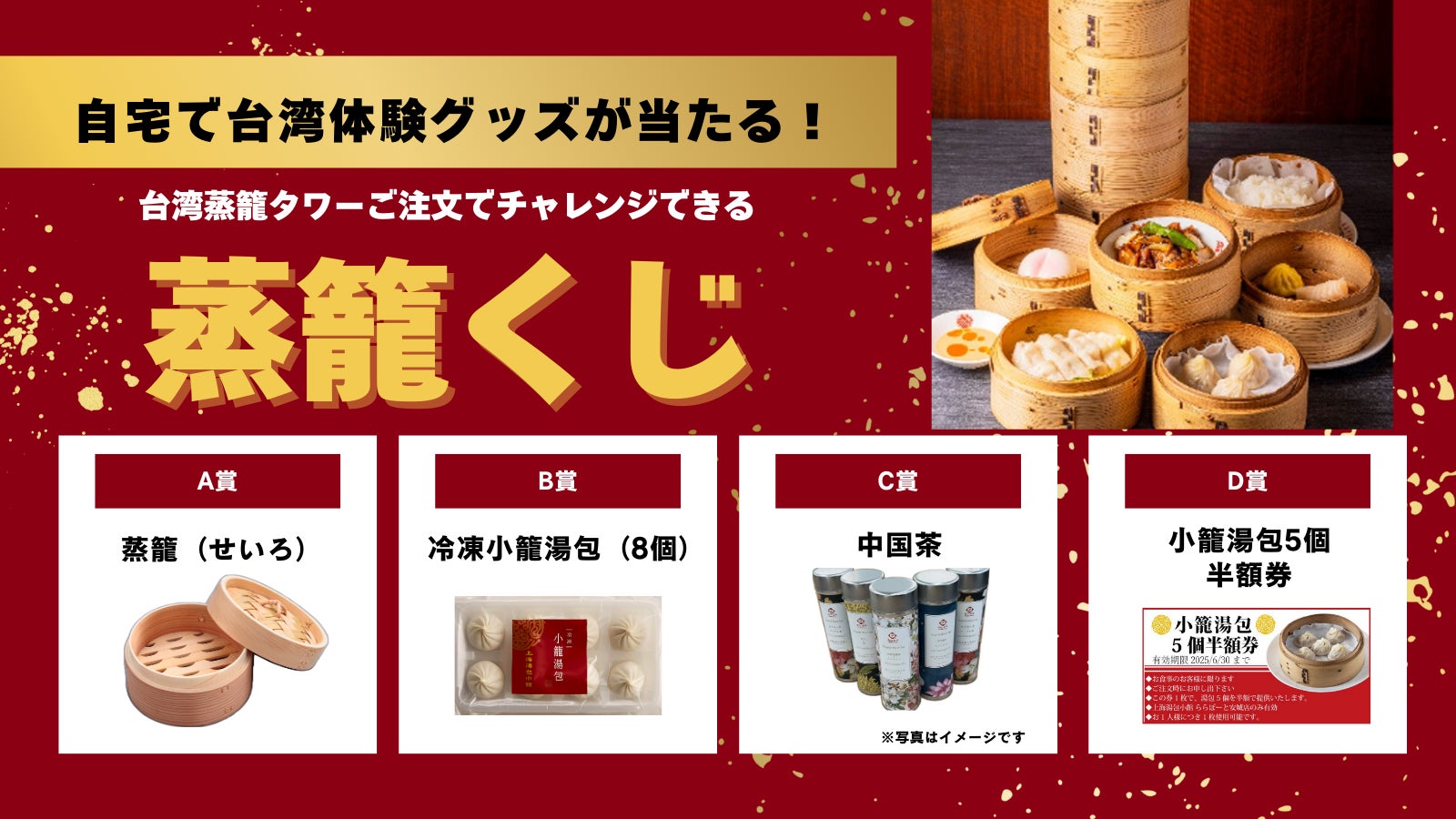 蒸籠(せいろ)の中に当たりが入っていればご自宅でも台湾体験を楽しめる限定グッズがもらえるかも。
