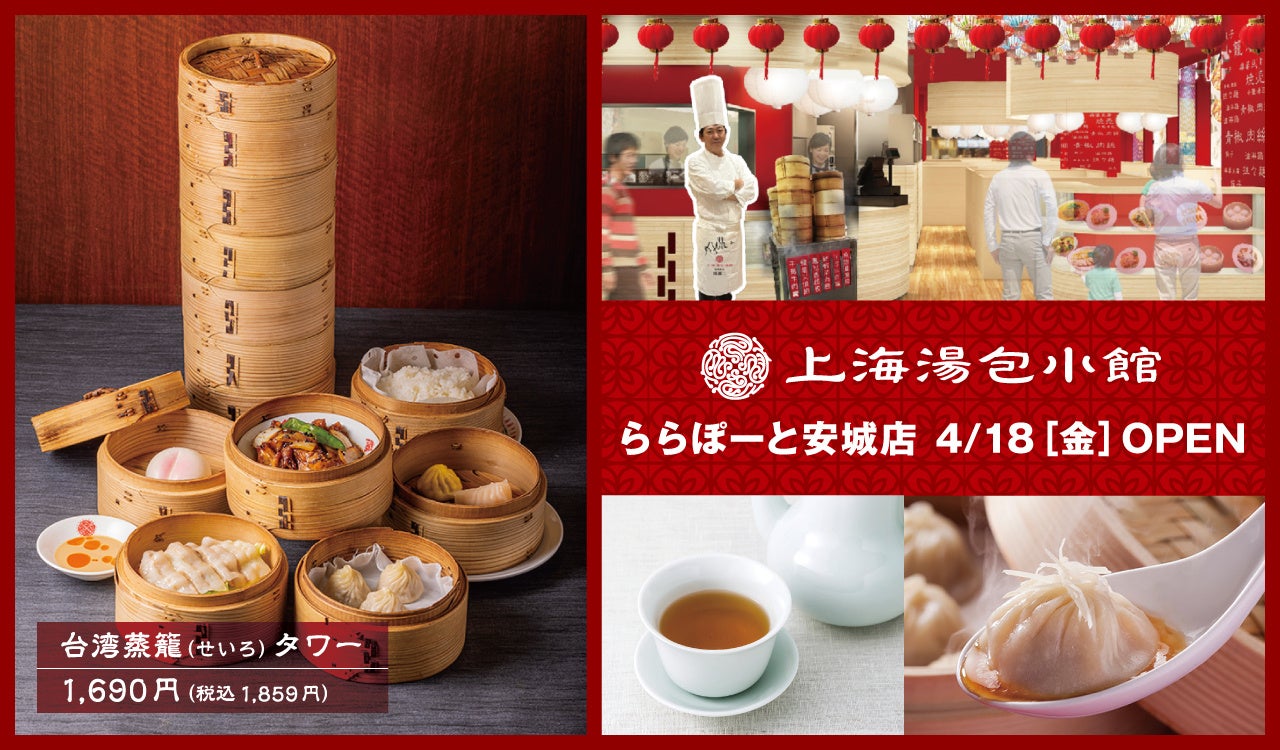 スガキヤが26年磨いてきた本格中華をリーズナブルに楽しめる『上海湯包小館』が“感動台湾体験”をテーマとした新店「ららぽーと安城店」4/18(金)オープン!全店でお得なキャンペーンも!