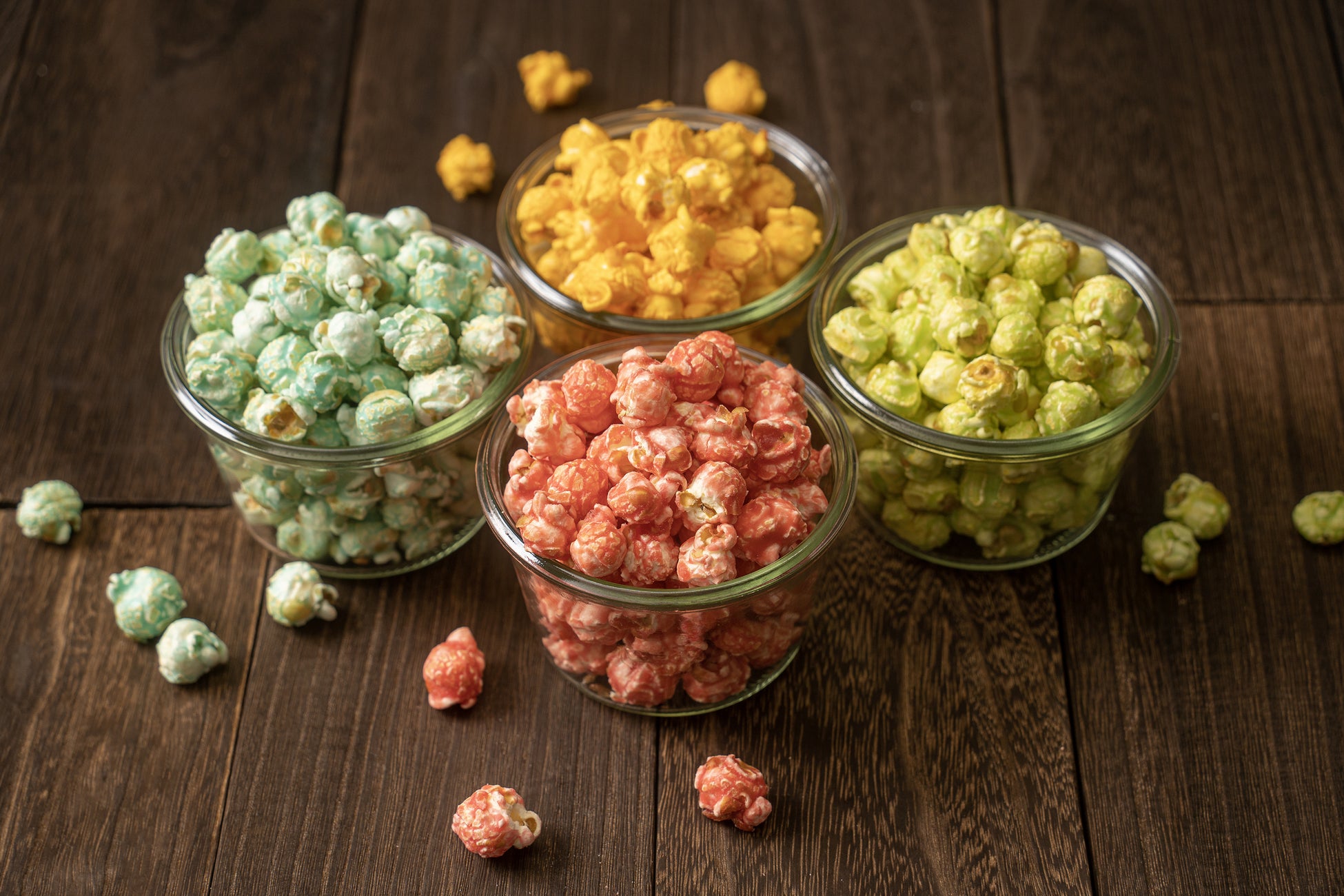 最大4つの味が楽しめる、見た目も楽しいさまざまな味のポップコーンをご用意いたします!