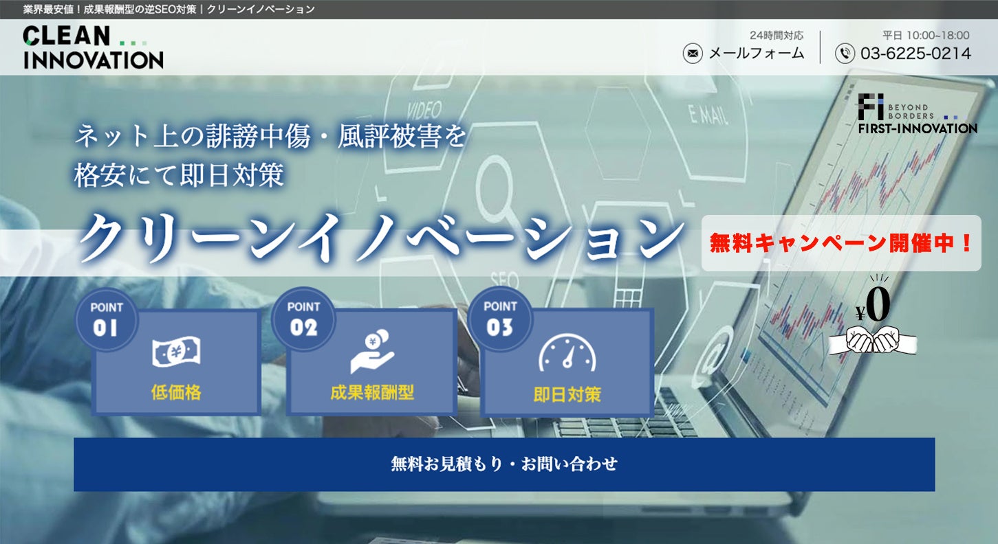 誹謗中傷・風評被害対策無料キャンペーン開催!成果報酬型の誹謗中傷対策「クリーンイノベーション」