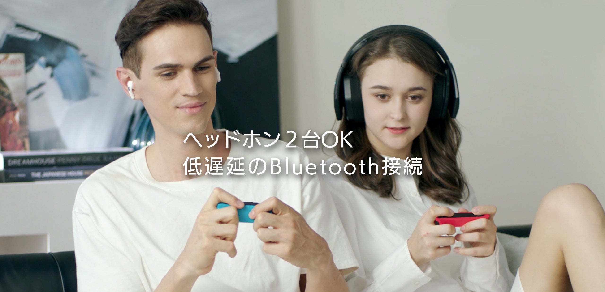 aptX-LLを搭載したBluetooth 5.0版とQualcomm CSR8670チップを搭載し、音声遅延を40msまで低減。ヘッドホンを2台まで同時接続可能なため、友達と一緒にゲームの世界を共有できます。