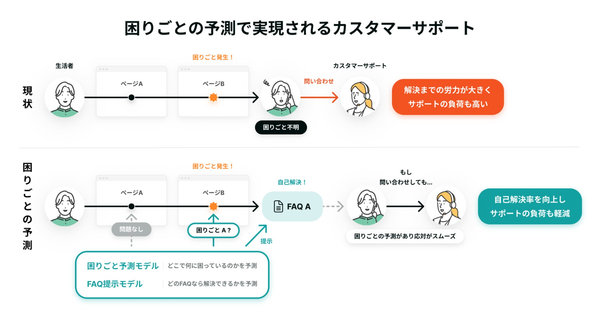 この研究により問い合わせ前の段階で顧客の課題を予測検知できれば、これまで以上に自己解決を促進し、顧客体験のさらなる向上が期待できます。加えて、これまでサポートが難しかった、サイレントカスタマーの救済にも繋がります。
