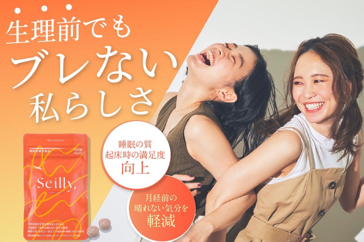 多くの女性が月経前に感じる、気分の浮き沈みや睡眠の質の低下。これらの悩みは日常生活に大きな影響を与えますが、その不調を乗り越えるための新しいサポートアイテムが誕生しました。新商品「Seilly,(セイリー)」は、がんばる女性が「もっと自分らしく、ありのままで過ごしたい」という願いに応え、女性の【新定番】を目指します。