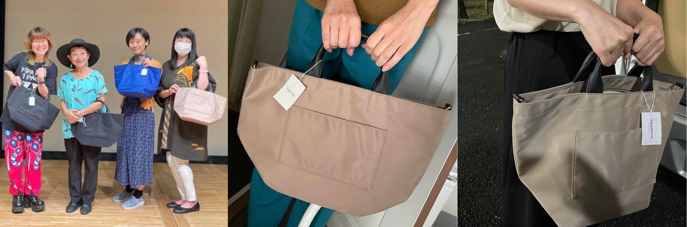 ドラマ⾐装協⼒も多く⼿がけるバッグ・ジュエリーブランド株式会社HAYNI(本社 株式会社HAYNI:⼤阪市淀川区)は、はあちゅうさんコラボ商品「2wayナイロントートバック」を100個、社会福祉⼠・内閣官房こども政策参与の辻 由起⼦⽒を通じて、女性の支援団体へ無償で提供いたします。製造過程で傷のついた商品など、正規販売が難しいものの、機能上は問題ない商品を、⽇々頑張る⼥性に届け、廃棄ロスをなくし持続可能な仕組みづくりを目指して行きます。