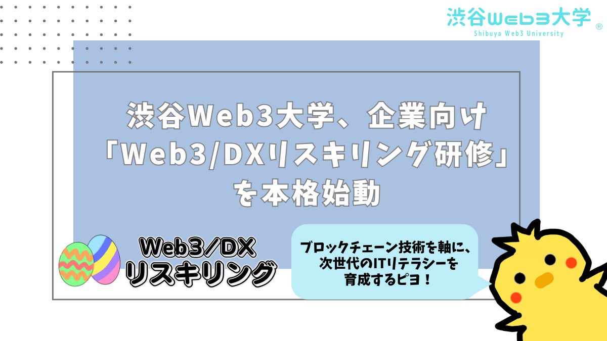 Web3に特化した実践型のプロジェクト創発コミュニティ「渋谷Web3大学」を運営する渋谷Web3大学株式会社(本社:東京都渋谷区、代表取締役:北村元 以下、渋谷Web3大学)は、企業向け「Web3/DXリスキリング研修」の本格展開を2024年10月1日より開始いたしました。