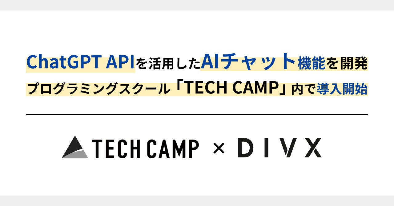 株式会社divx、ChatGPT APIを活用したAIチャット機能を開発。グループ会社が運営するプログラミングスクール「テックキャンプ」内で導入開始。