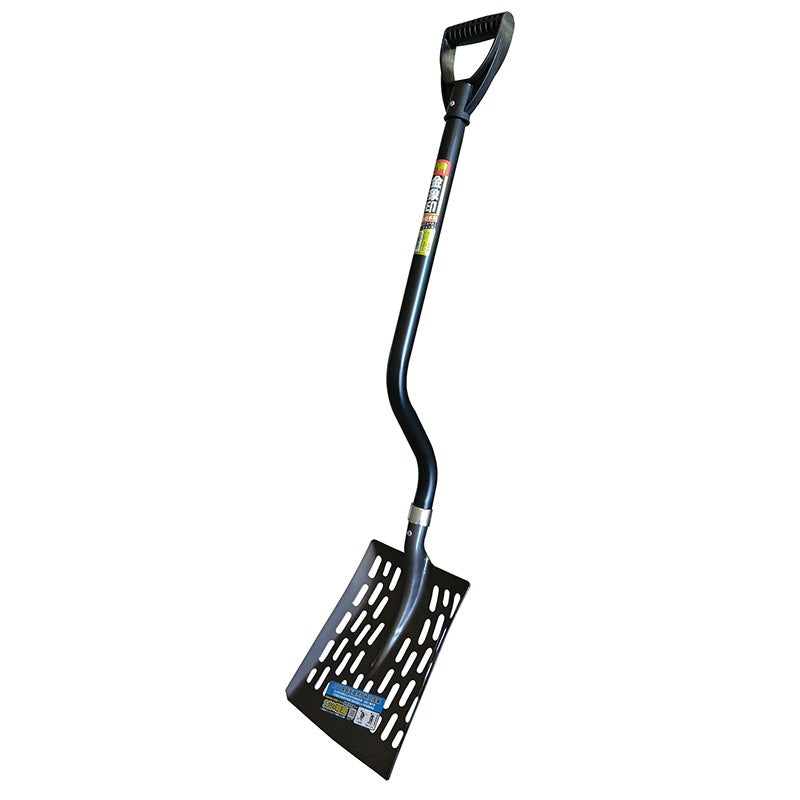 産官学共同研究により開発されてショベルで、特殊加工のZ型形状の柄をしようしすくい上げ作業に特化した商品。また、穴あき形状による軽量化、薄肉使用で土ささり性、土離れ性もアップ。