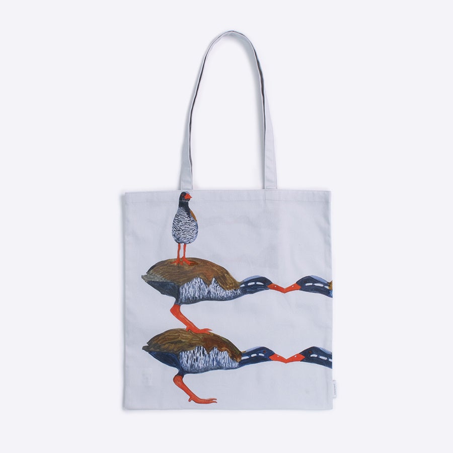 絶滅危惧種のヤンバルクイナを描いた「組体操」をはじめとする、全4作品がデザインされた、FAVORRICオリジナルアイテム (フラットサブバッグ、クッションカバー、リネンポーチ)を2023年10月18日(水)より公式サイトにて販売開始します。