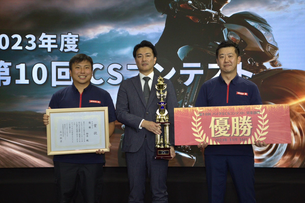 今回のCSコンテストは、全国のバイク王社員がオンラインで視聴し、出場者と一部社員は世田谷本店と進行や受賞式が行われる収録会場に集め、オンラインとオフラインを掛け合わせて開催しました。
