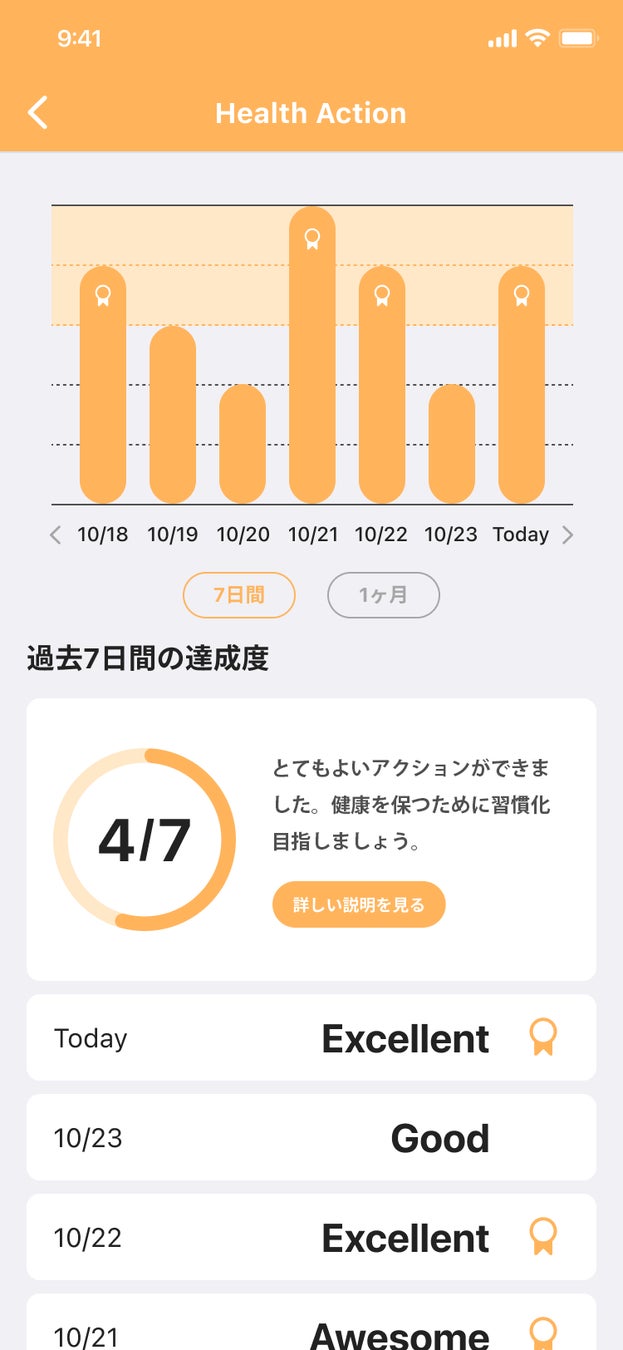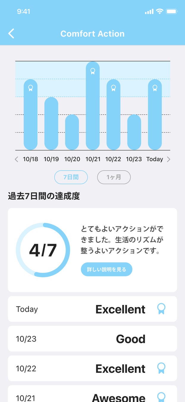 活動ログ(3つの指標:1週間の日光浴目安評価がわかる)