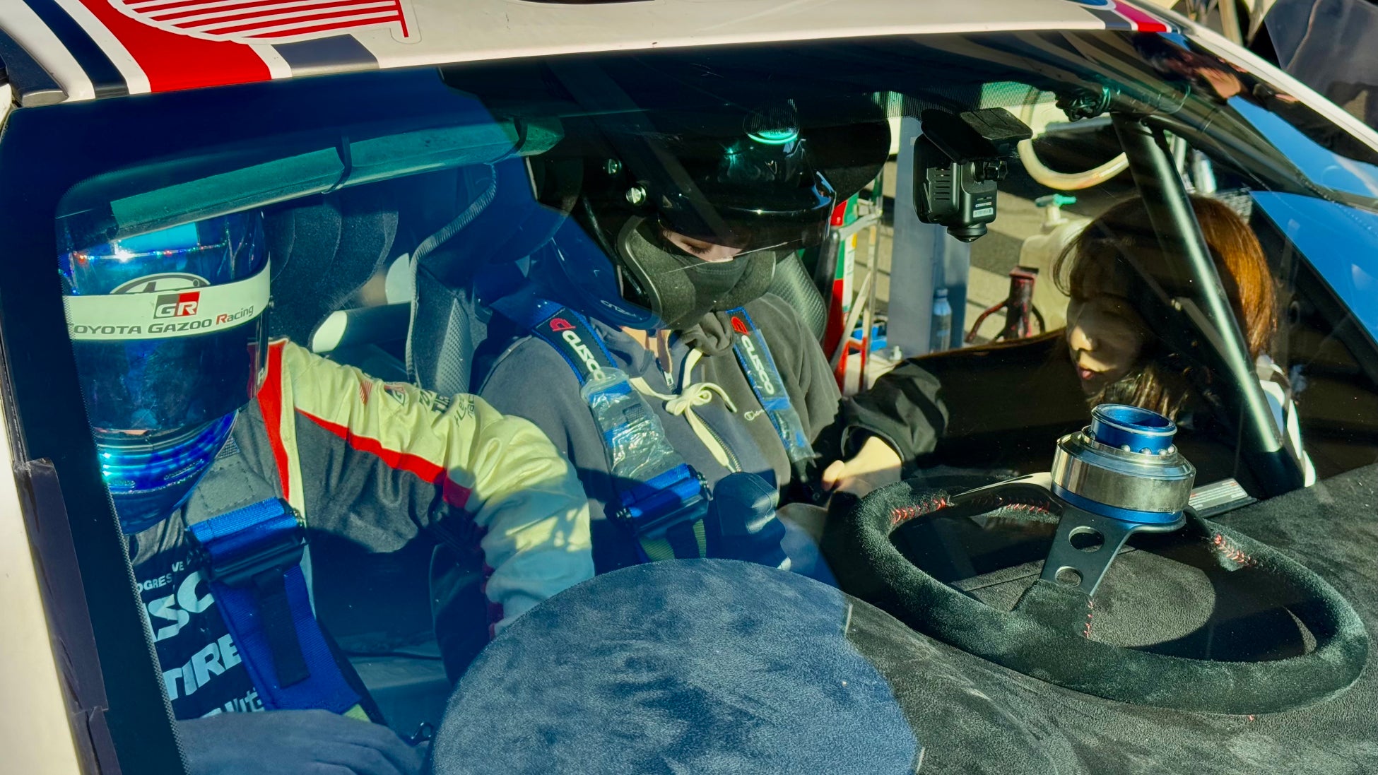 参加者は緊張の面持ちでフルバケットシートに着座してレーシングハーネスを締めた後、今までに体験したことない加速Gと、爆音のレーシングサウンドに包まれます。予想を遥かに超える速度・角度でのコーナーへの侵入から極限のコントロールでコーナーを抜け、下車するときには満面の笑みがヘルメットの中から飛び出します。助手席に乗っているときだけでなく、外から見てても大満足の時間でした。