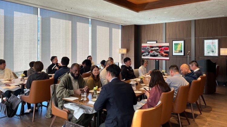 ランチには参加者が一堂に会し、レストア担当者、ドリフト体験のドライバーを務めた松山北斗氏とハチロク愛を語り合う懇親会が開催されました。TROFEO イタリアンの広々とした個室で、ハチロクの歴史や開発秘話のお話があった後に、参加者各々がハチロクに傾倒していったエピソードを語り合いながら、静岡の食材を活かしたイタリアンランチコースをご堪能いただきました。参加者一同が世代や国境を越えてハチロクに対する深い愛情で繋がった、かけがえのない一時でした。