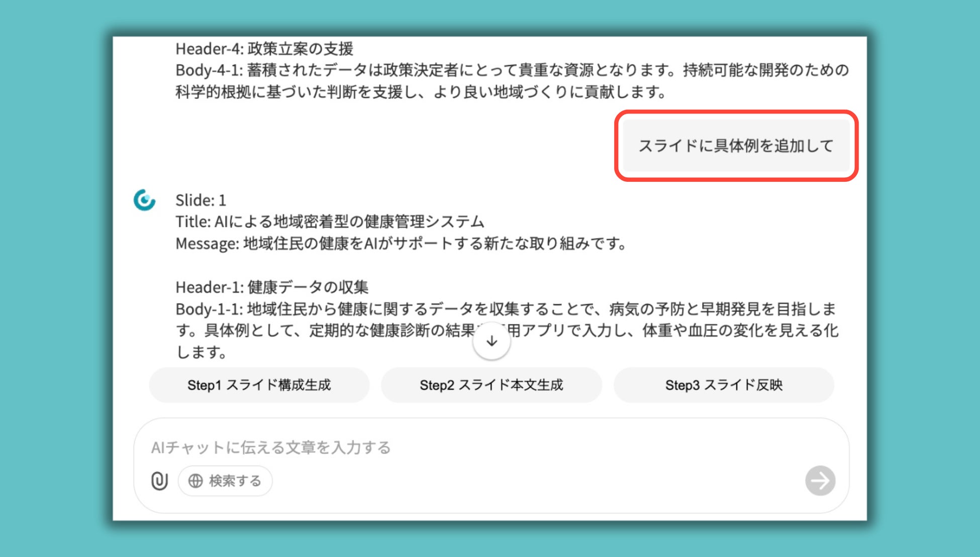 ③ “壁打ち”のように使えるチャット形式スライド生成