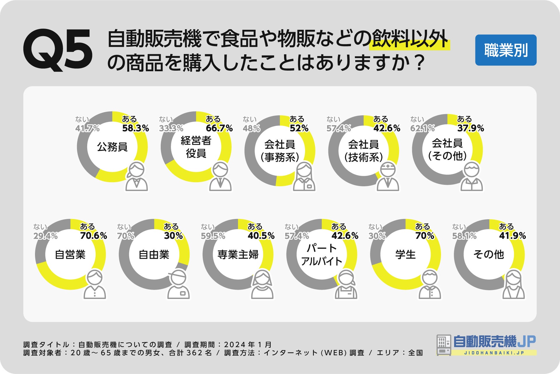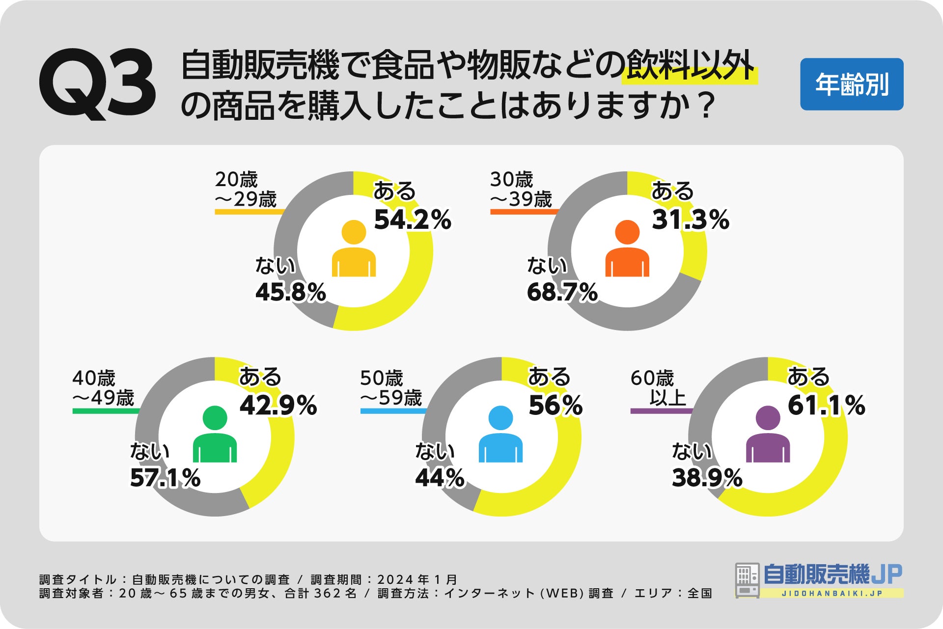 【自販機に関する調査①】飲料以外の商品の購入率は?年齢別、地域別でも調査
