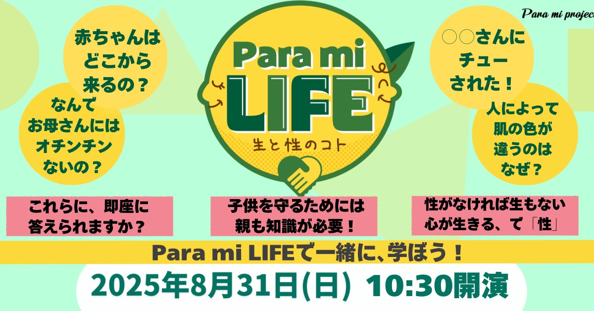 「Para mi」とは“自分のために”という言葉。親子で楽しむ週末イベント「Para mi LAND」を中心に活動を展開してきたPara mi projectが、新たなテーマとして“生きる力”や“性“に向き合う「Para mi LIFE-生と性のコト-」を始動します。