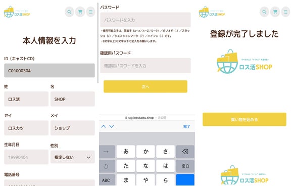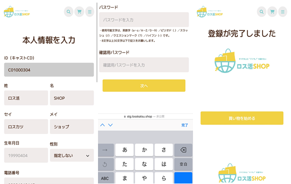会員情報およびロス活SHOPで使用するログインパスワードを登録。登録完了後、お買い物スタート。