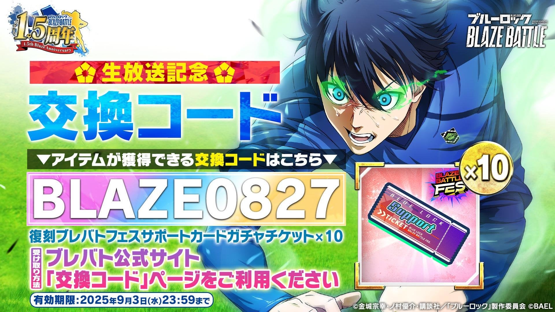 ・詳細はゲーム内のお知らせやブルーロック『BLAZE BATTLE』公式Xをご覧ください。