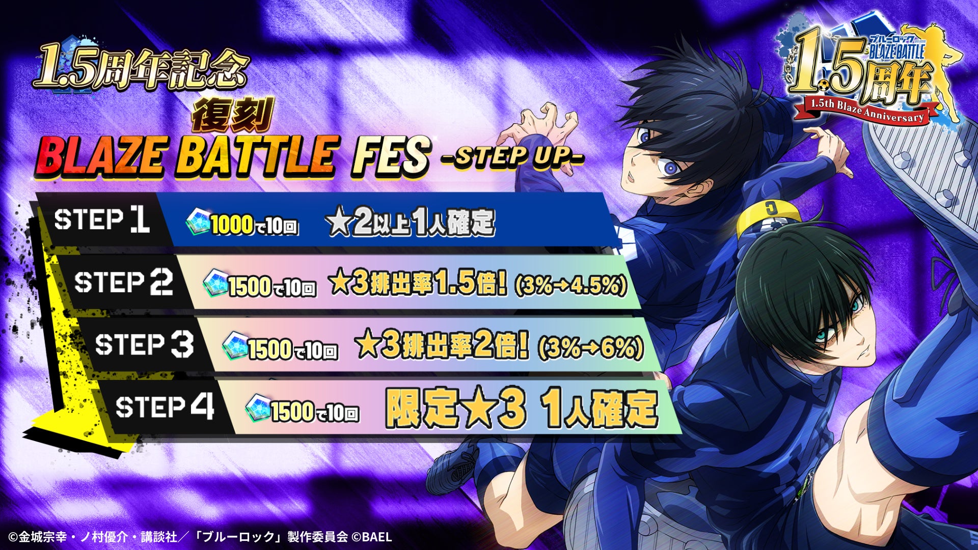 『ブルーロック BLAZE BATTLE』(ブレバト)が1.5周年!最大300連ガチャ無料など、怒涛のブレバト大感謝祭として超超特大キャンペーン&新イベントを開催!