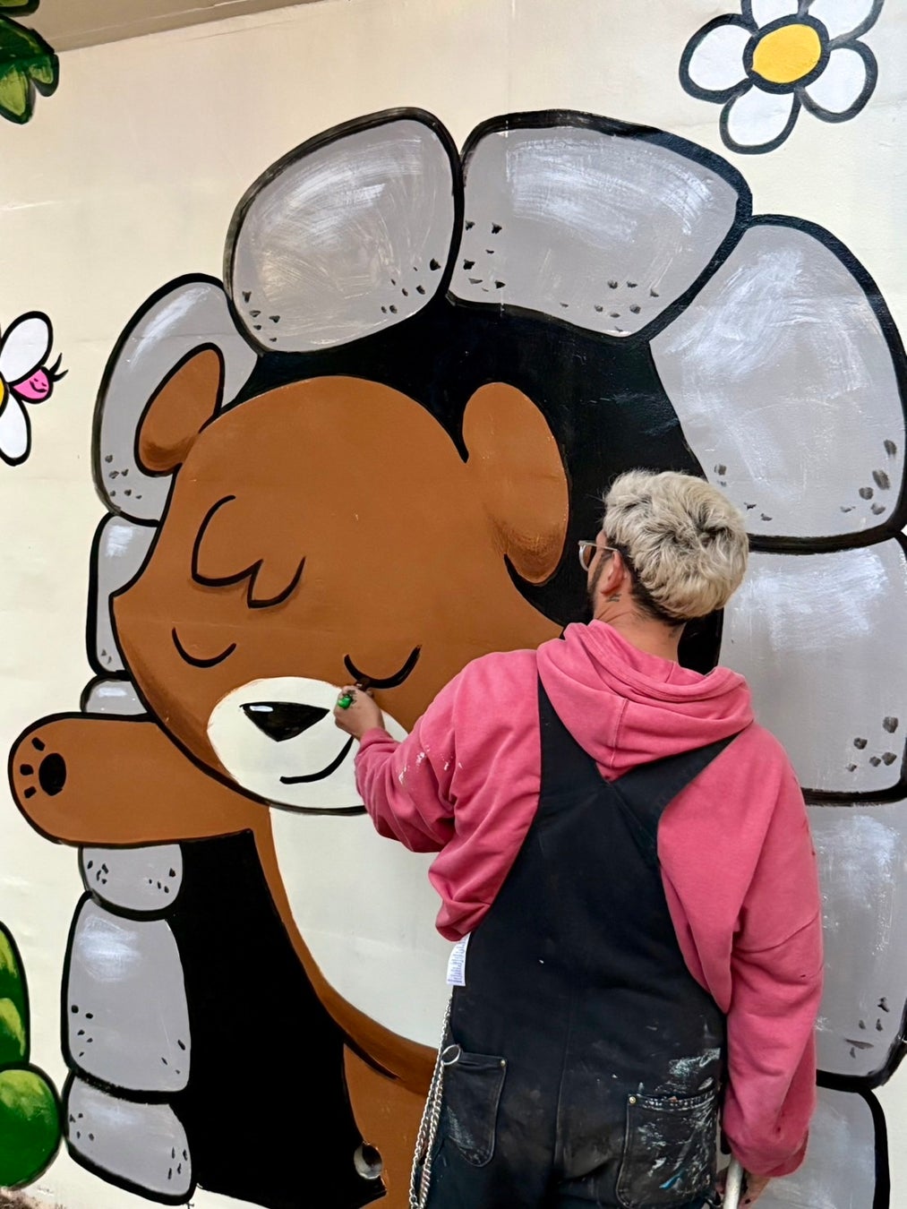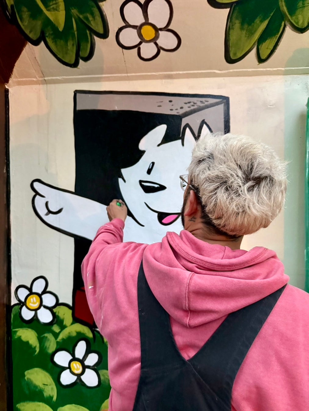 完成した作品は、Philip Lumbangの代名詞でもある、ユーモアとメッセージ性を融合した独自のストリートアートスタイルで描かれており、都市の中に温かさと遊び心を感じさせるビジュアルに仕上がっています。