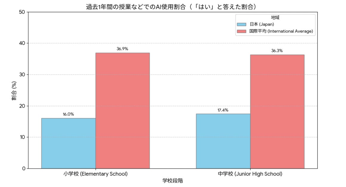 AIとの共存が当たり前となる中で、子どもたちにはAIを活用した新たな価値創造力が求められています。また、現在の日本は小中学校におけるAI活用度が国際平均と比べて大きく遅れをとっていることも事実です。