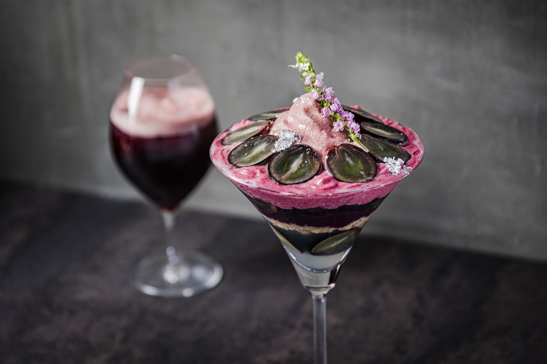 ピノノワールの赤ワインにナガノパープルとカシスを加え、表面にエスプーマを加えた溢れる果実感と葡萄らしい味わいをお楽しみください。