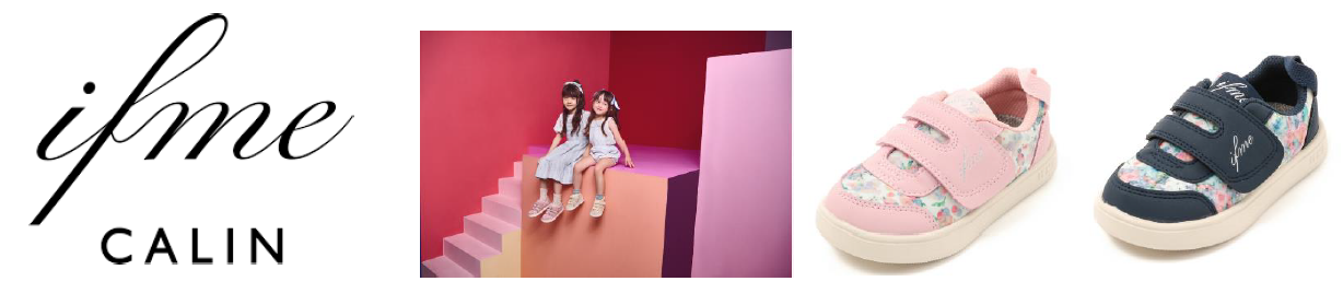 「ifme CALIN」は、「かわいいをシェアする」をコンセプトに、ママと女の子が共に“かわいい”と思えるデザインを取り揃えています。花柄 模様や、ベルト部分に一際目を引く大きなモチーフをあしらうなど、ポップでキュートなデザインが人気のブランドです。ファーストシュ ーズ・ベビーサイズ・キッズサイズまで展開があり、その愛くるしいシューズたちは SNS でも注目を集めています。