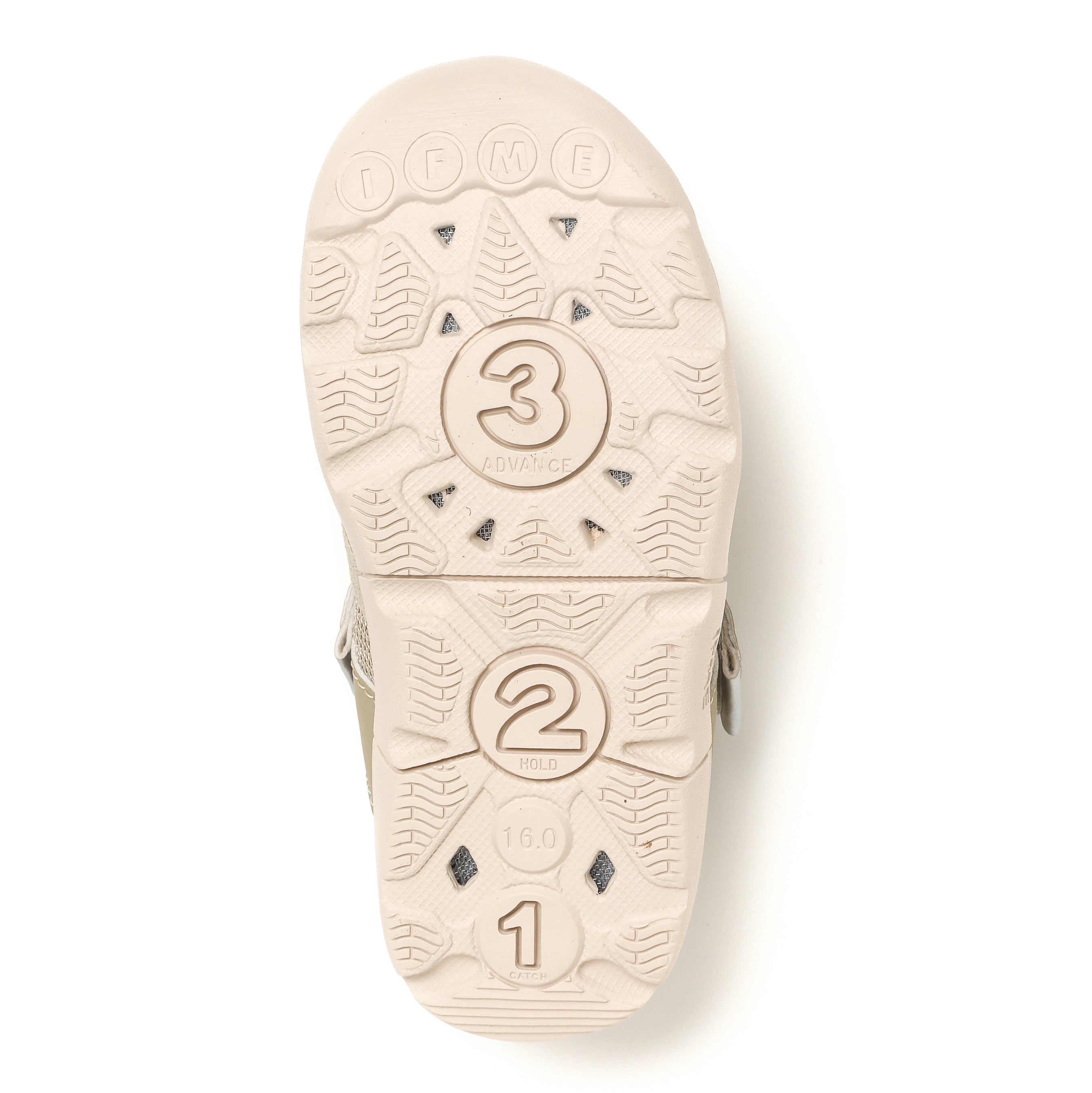 子ども自身での履きやすさに配慮した「アウトサイドストラップ」や、子どもの健やかな足の成長を育むインソール「ウィンドラスソーサー ®」など IFME のオリジナル機能を搭載しています。