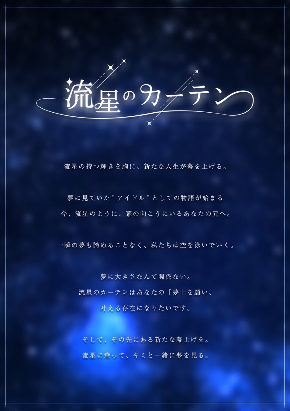 新たなアイドルシーンを駆け抜ける「流星のカーテン」の誕生に、どうぞご期待ください。
