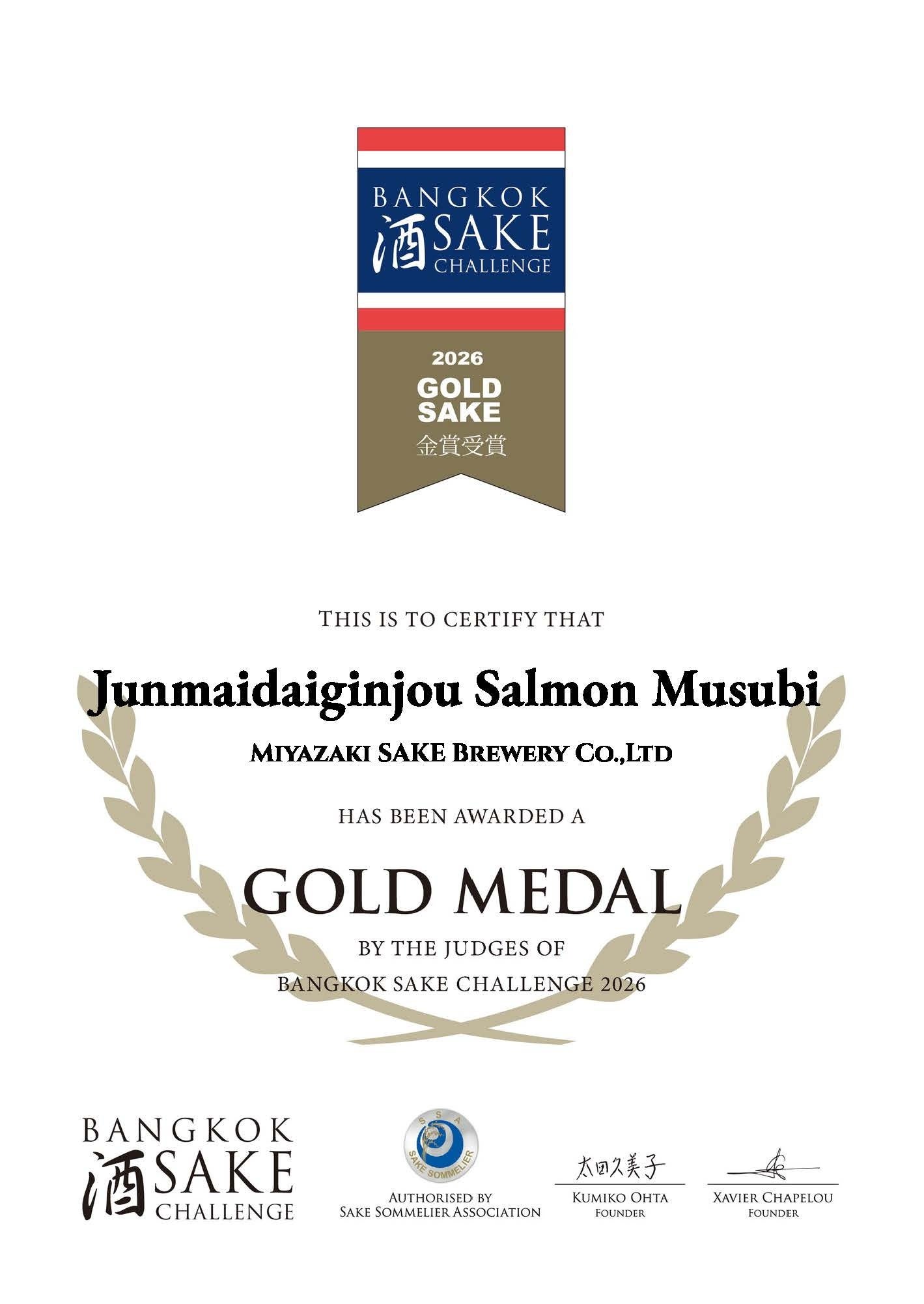 創業160年・初の海外コンテスト受賞。宮崎酒造店 純米大吟醸 「サーモン結び」「まぐろ結び」が『バンコク酒チャレンジ2026』で “ゴールド” × 2冠 & “特別賞” を獲得!