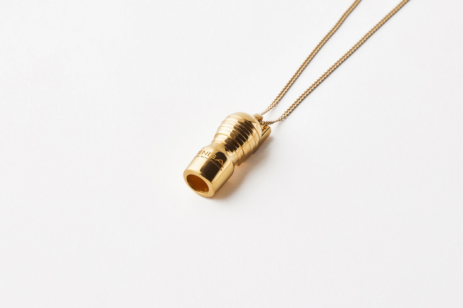 TENGAホイッスルは、純金でTENGAの造形を忠実に再現し、さらに笛として吹くことができる吹き口を設けました。世界に1つだけの音色であなたを包み込み、心をやすらかに癒してくれることでしょう。